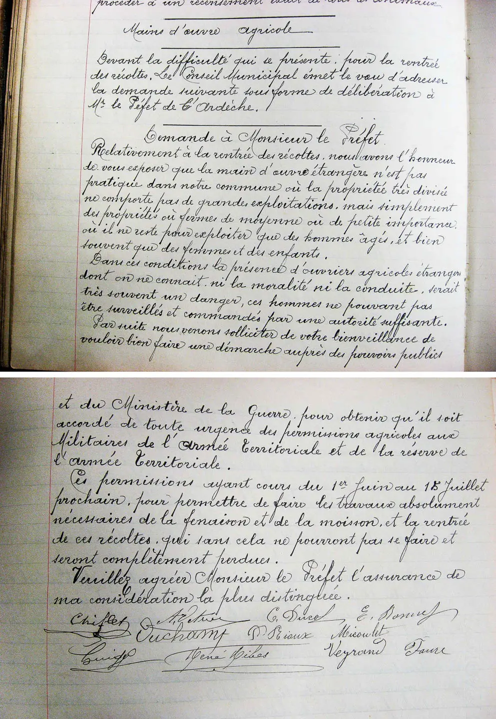 La crainte de voir ces inconnus arriver dans les campagnes se manifeste à Quintenas dès 1915 comme le montre cette demande visant à exclure une aide sous cette forme.