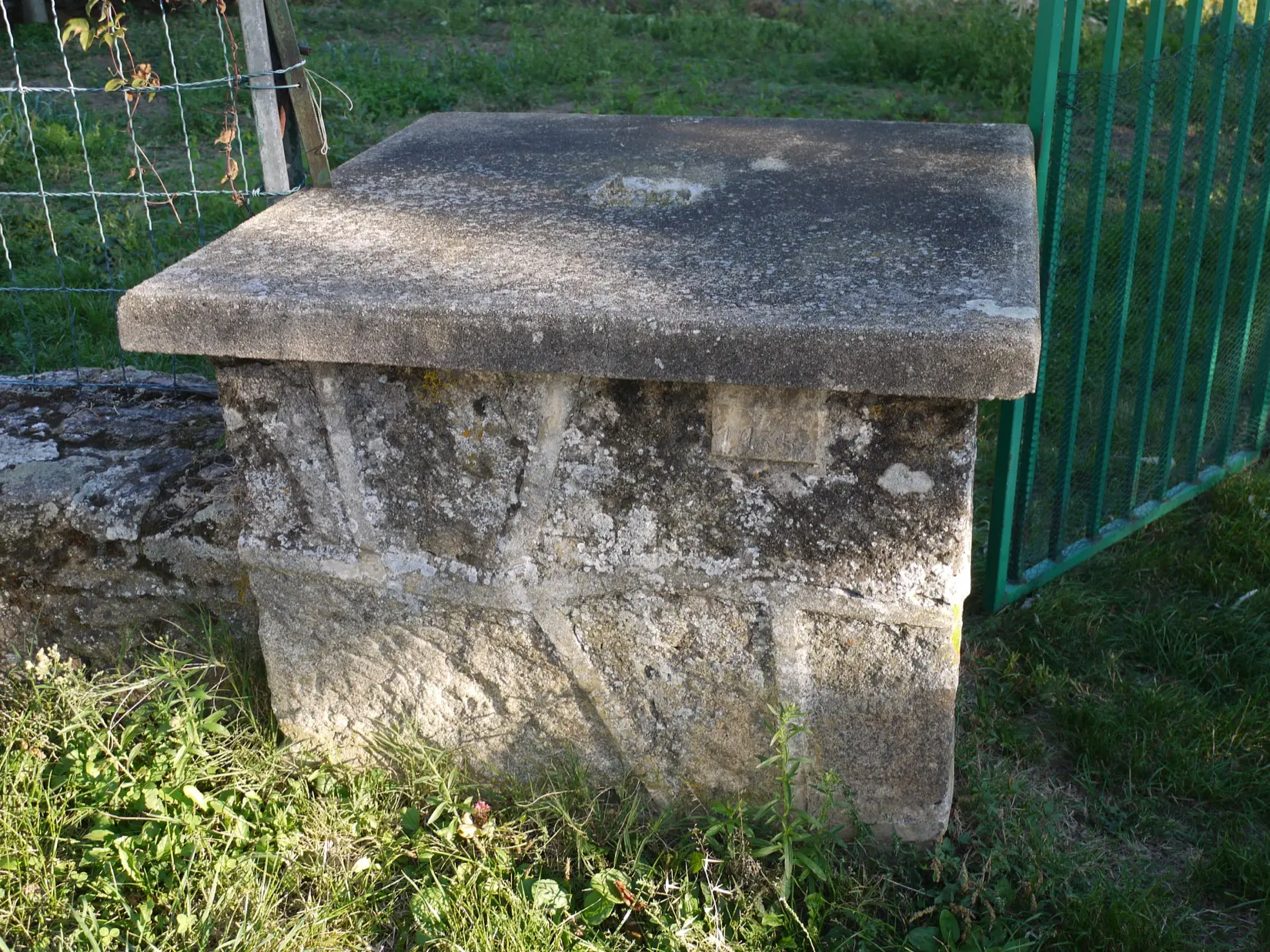 Longtemps resté vide, le socle a été rénové et complété par une croix de métal en provenance du cimetière (concession abandonnée) en 2025.