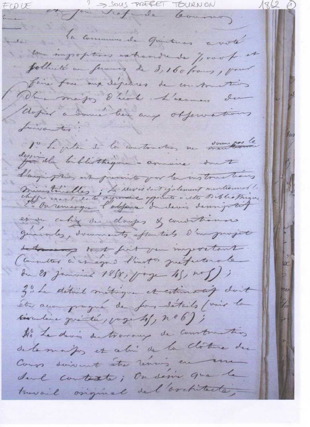 1862 – Projet de construction d’une nouvelle maison d’école