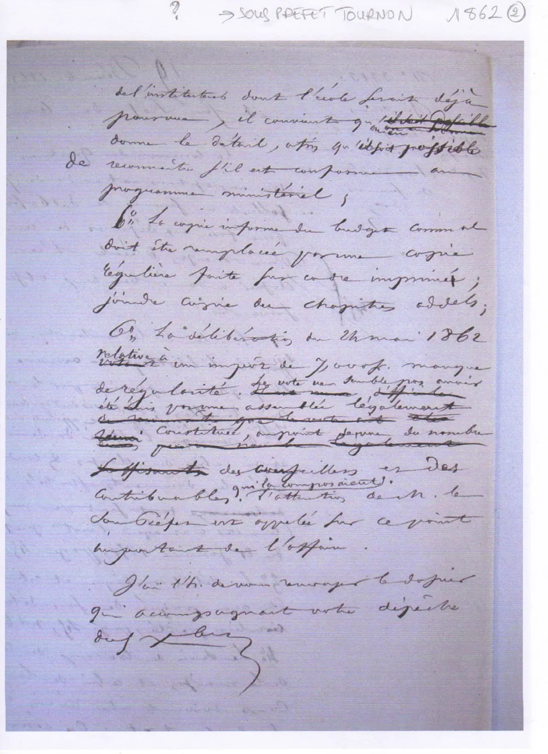 Dans les échanges avec le Sous-Préfet de l’Ardèche concernant ce dossier, plusieurs irrégularités sont relevées : pas de bibliothèque-armoire prescrite par les instructions ministérielles sur le plan ; absence de devis descriptif et de cahier des charges ; copie du budget communal non réglementaire ; vote du Conseil Municipal non émis par une assemblée légalement constituée.