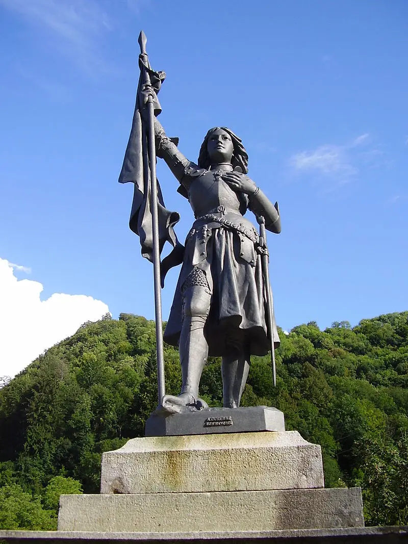 Elle a même été érigée aux États-Unis où elle trône devant le centre médical Pacific Alliance de Los Angeles (Californie). Le socle de la statue a été gravé en français « Jeanne d’Arc ».