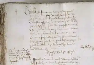 Dans les registres paroissiaux, l’acte le plus ancien connu avec ce patronyme est :