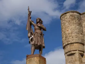 Elle trône depuis le tout début du XXe siècle sur la place de l’Église, perchée au sommet de la fontaine publique. Jeanne d’Arc, personnage universel, a même donné son nom à la place du village pendant quelques décennies.